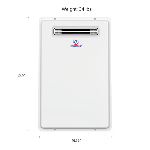 The Eccotemp 20H Outdoor Natural Gas Tankless Water Heater is one of the most advanced CSA approved outdoor models of the Eccotemp tankless line. Rated at an impressive 6.0 GPM with a temperature rise of 38 degrees and 150,000 BTU per hour, the Eccotemp 20H-NG can meet all your hot-water needs! Eccotemp’s advanced 0.7 GPM low flow ignition technology allows users to enjoy endless hot water without experiencing cold spots.