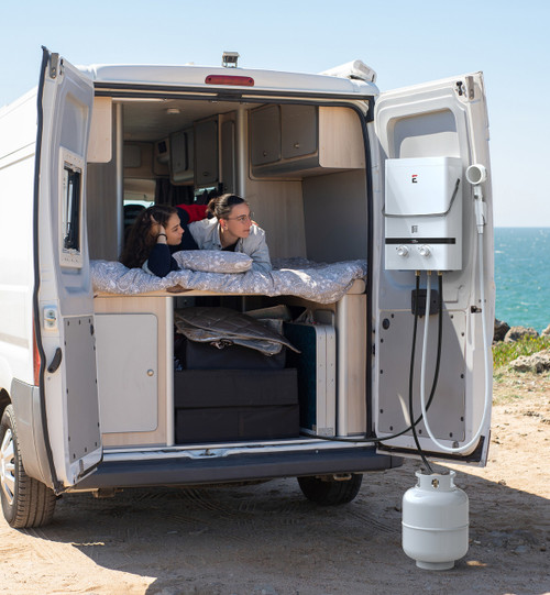 - This water heater can be used in a variety of scenarios and places: while you're camping, hunting, hanging poolside, washing your pets or horses, cleaning your vehicle, or even in your tiny home, greenhouse, or food truck.