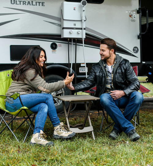 The Eccotemp EL7 Portable Tankless Water Heater is the number “1” trusted and sold CSA approved portable tankless water heater. The EL7 was meticulously designed in Summerville, SC, with quality, features, and price in mind. This Eccotemp EL7 Portable Tankless Water Heater features an Extreme All-Weather Rain Cap and a Tri-Coat Pearl White painted outer body giving the EL7 a beautiful look and feel like no other. Inset Knobs increase your water heater’s durability and longevity. The unique steel designed Carrying Handle adds an element of durability and quality, allowing you to take your hot water anywhere.
