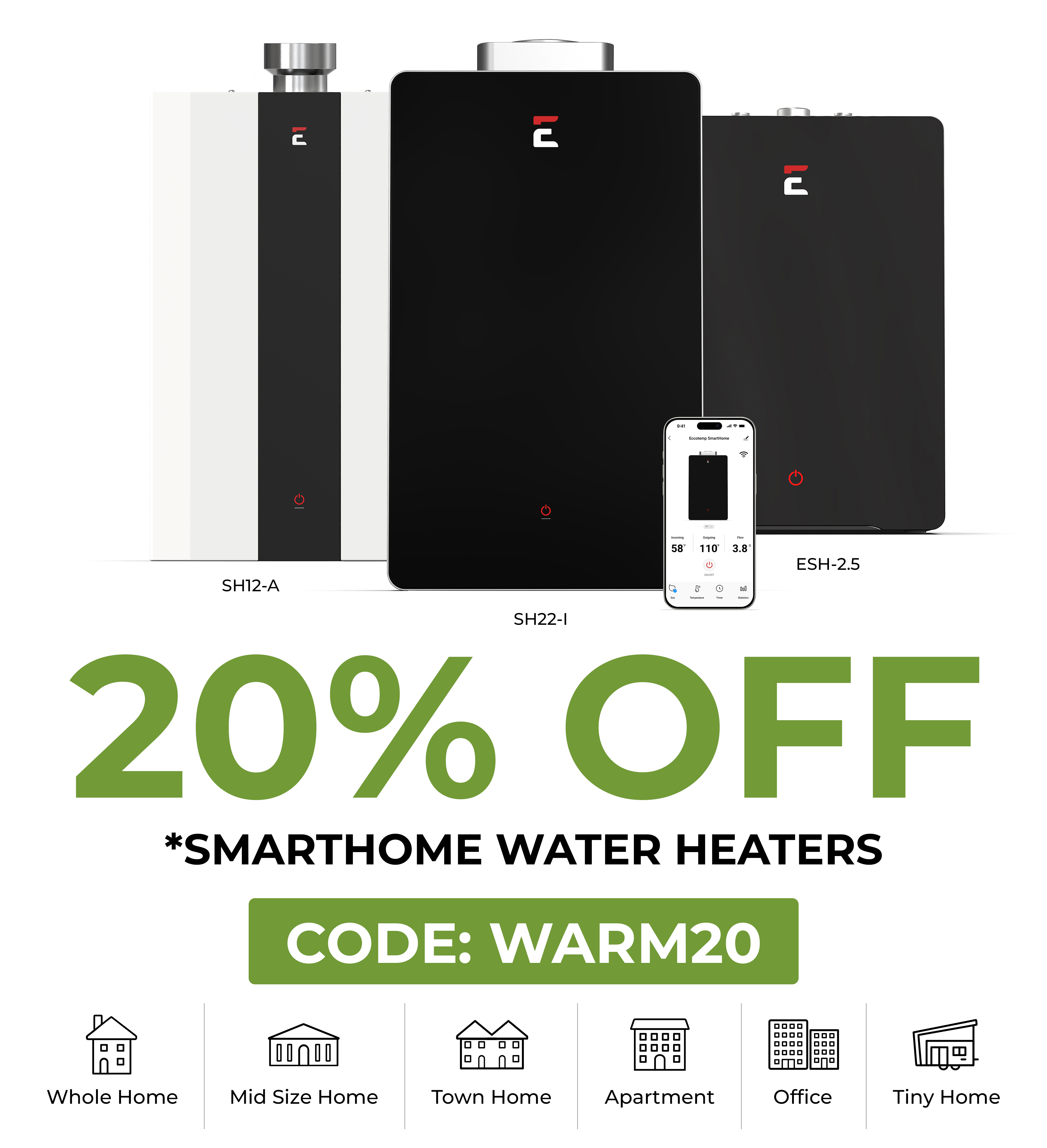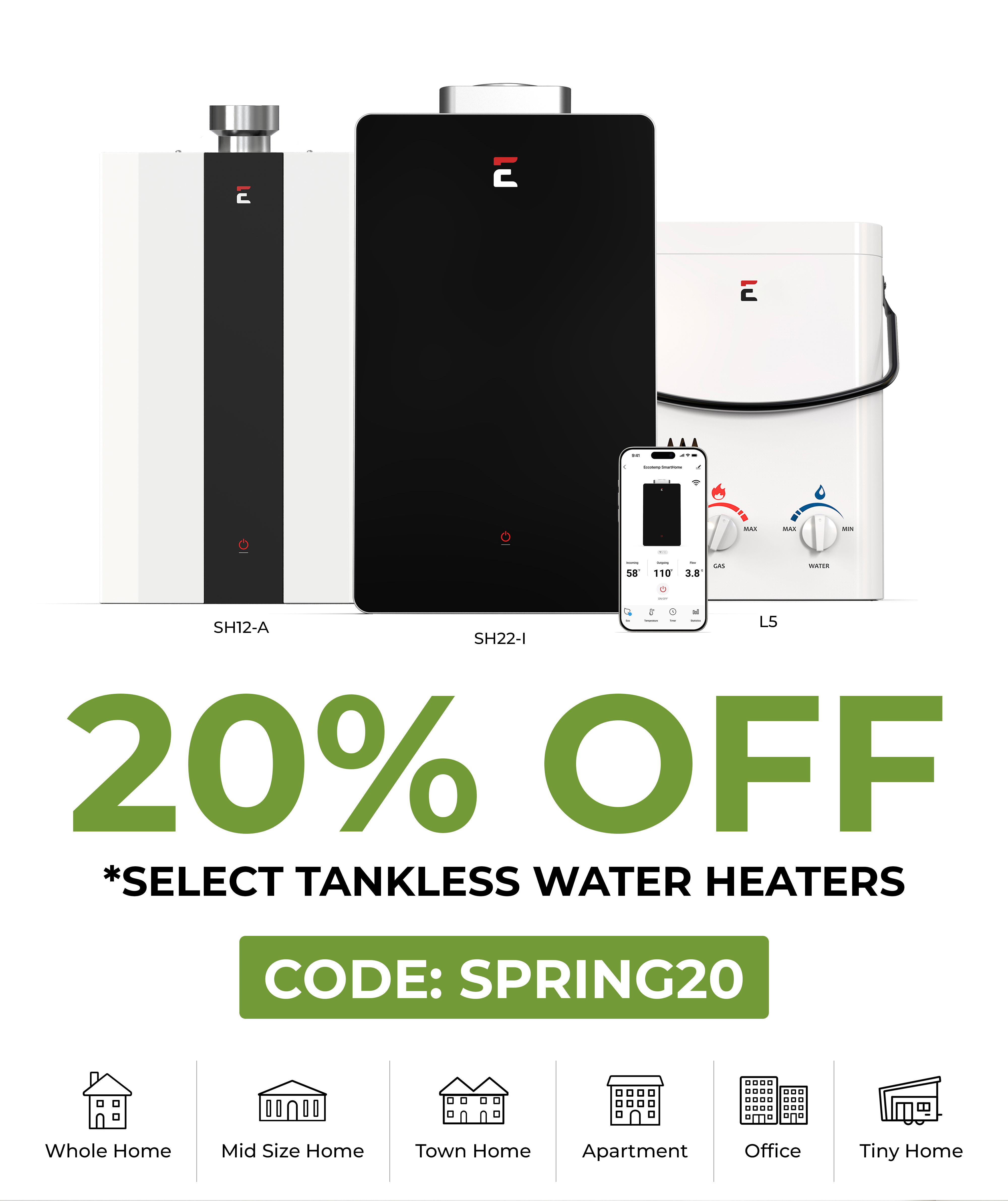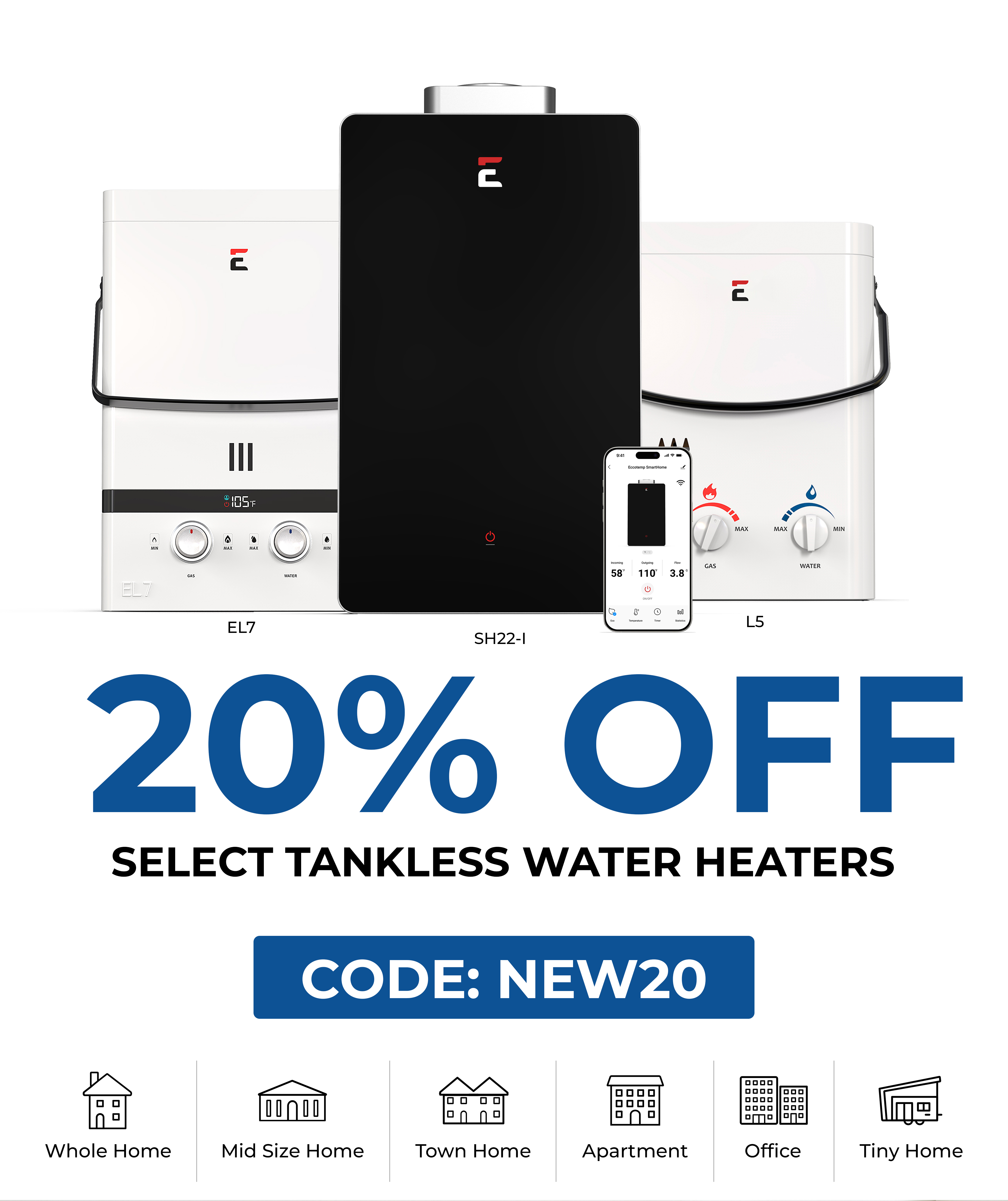 *Welcome pop-up: By submitting your email and phone number in the popup, you agree to receive text messages with your exclusive coupon code, along with future marketing communications. Code valid on select new water heaters only. Cannot be combined with any other promotion or discount. Excludes final sale, open box, scratch & dent, bundles, installation, venting, parts, accessories, and protection plans. Applies to new retail orders only on www.eccotemp.com.